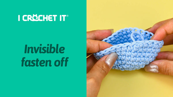 When you're done crocheting a piece, fasten off to keep your stitches secure. Then either weave in the yarn tail or use it to sew this piece onto another.